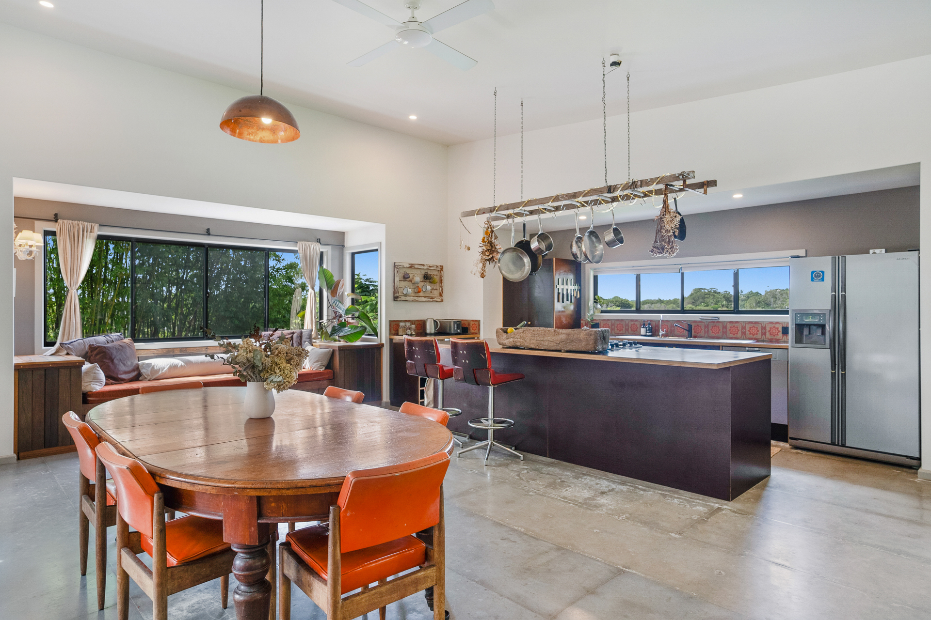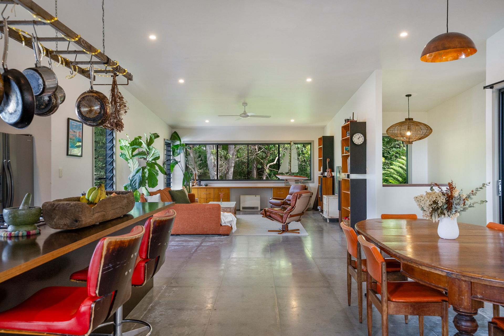 Showcasing impressive design with a focus on space, light and natural surrounds, this dual-level home has been brilliantly crafted by award winning Harley Graham Architects for low-maintenance and scenic living. The result is a unique residence with architectural smarts and a versatile layout that embraces today’s lifestyle with excellent privacy, lush leafy surrounds and gun barrel views to Mt Chincogan. This high-set and flood-free 751sqm slice of magic is peacefully nestled just a few minutes drive to the vibrant town centre of Mullumbimby, and walking distance to the local preschool.