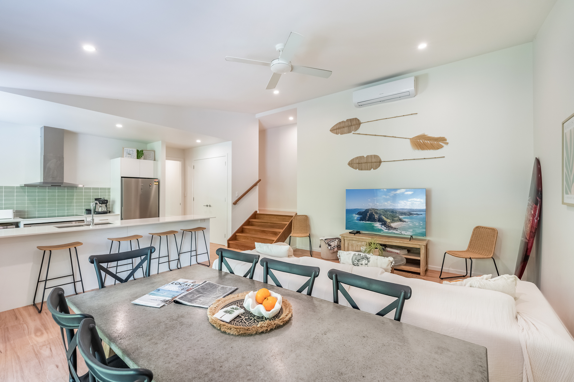 Exceptionally bright and easy to maintain, this quality-built architectural townhouse is a real game-changer in relaxed coastal living, offering a low-maintenance layout, privacy and plenty of outdoor space for entertaining. It has been cleverly designed to provide a super-functional home that focuses on light, space and tranquil tree-filled surrounds, and comes complete with a self-contained downstairs guest studio. This leafy hideaway is so peaceful it’s hard to believe everyday essentials are just moments away, and it’s an easy walk to the nearby Roadhouse Café and Tallow Beach, and just a five-minute drive to the heart of Byron Bay.