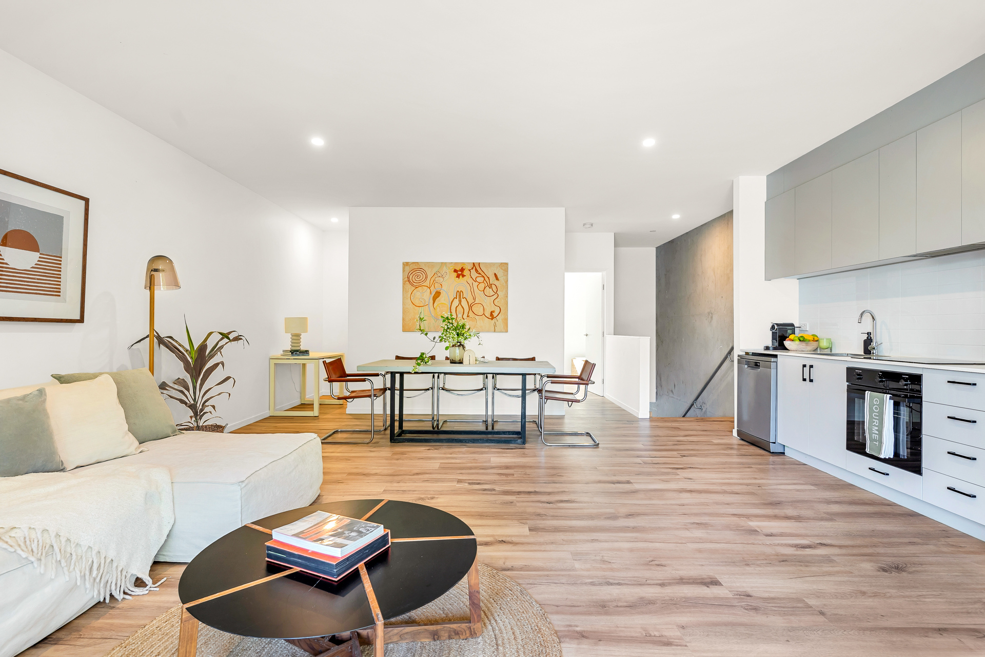 – Fresh contemporary interiors feature engineered timber flooring