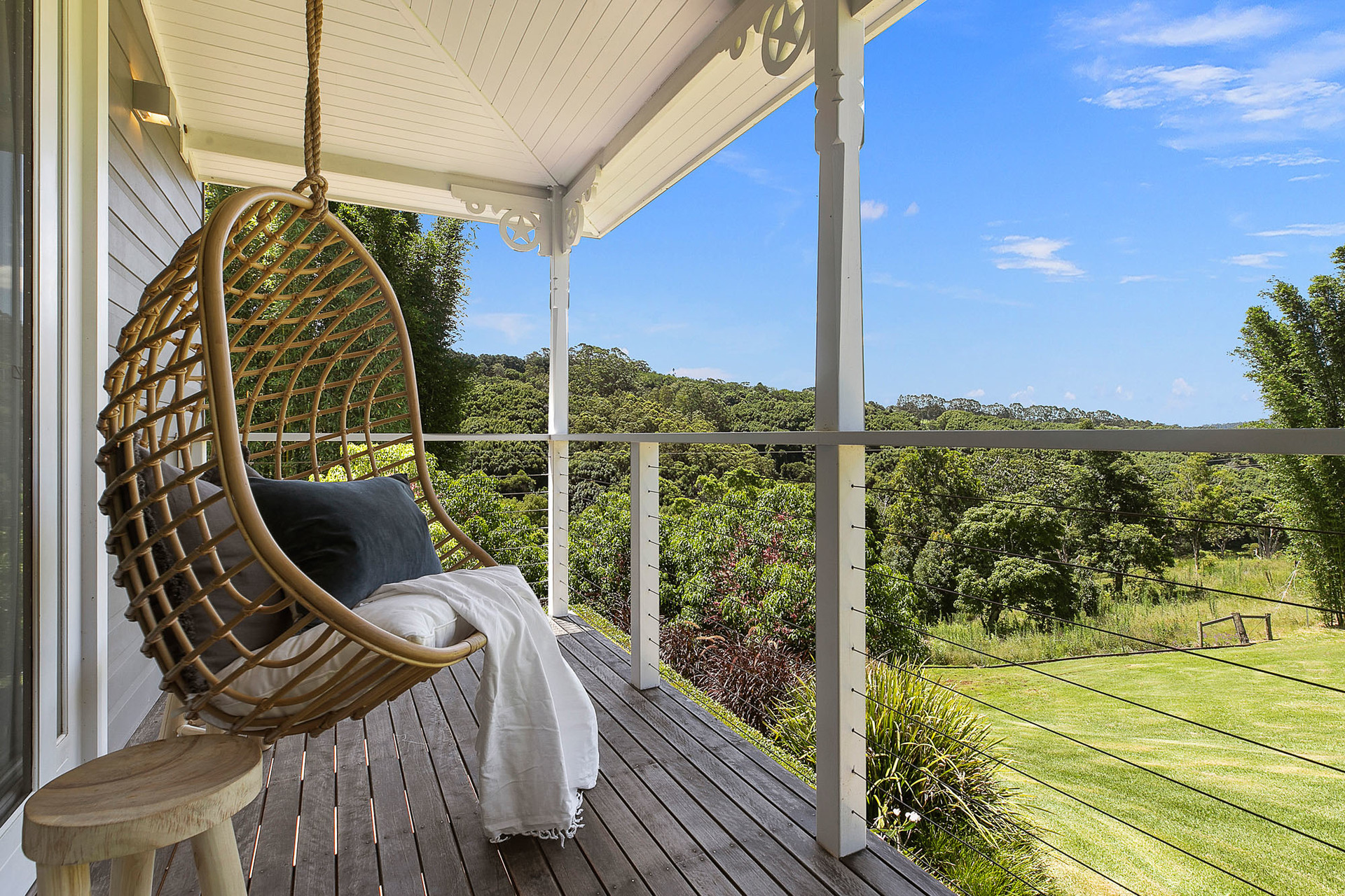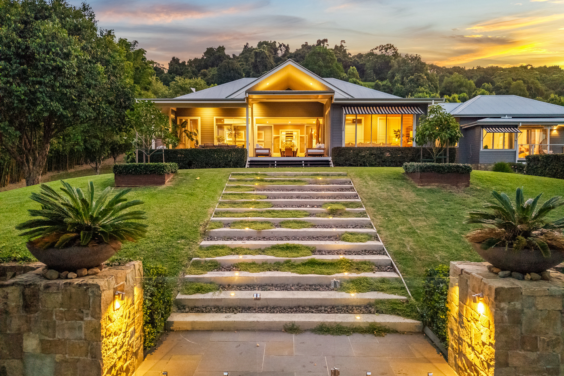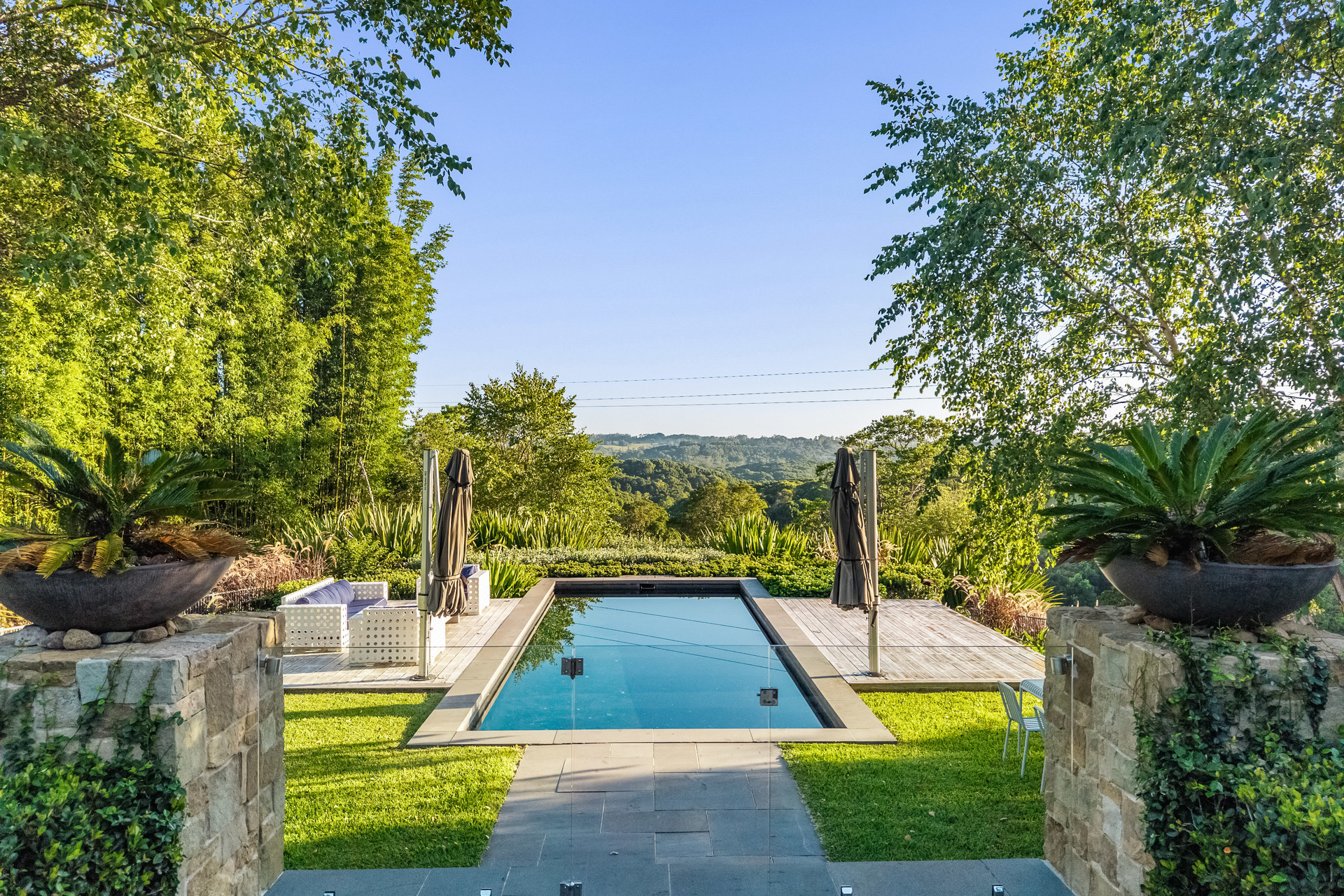 Set up high to capture fresh breezes and spectacular panoramas across to the Nightcap Ranges, this stunning home is beautifully laid out with a flowing open concept that interacts with a choice of outdoor spaces. A wide alfresco deck is perfect for entertaining or just relaxing while enjoying the view, plus there are established grounds featuring spacious north-facing lawns, landscaped gardens and a resort-style swimming pool with sundeck.