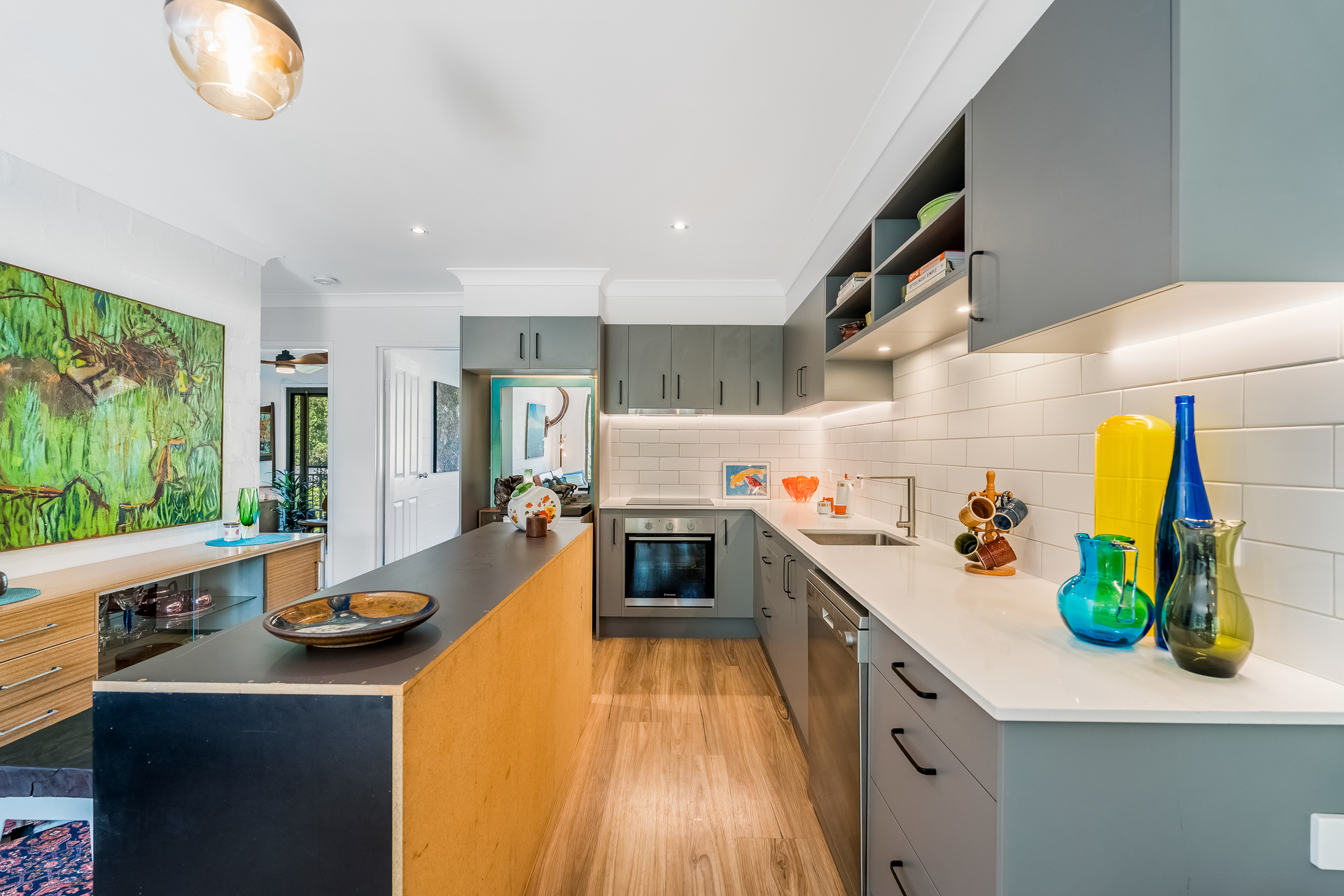 – Modern kitchen equipped with quality appliances and stone benchtops